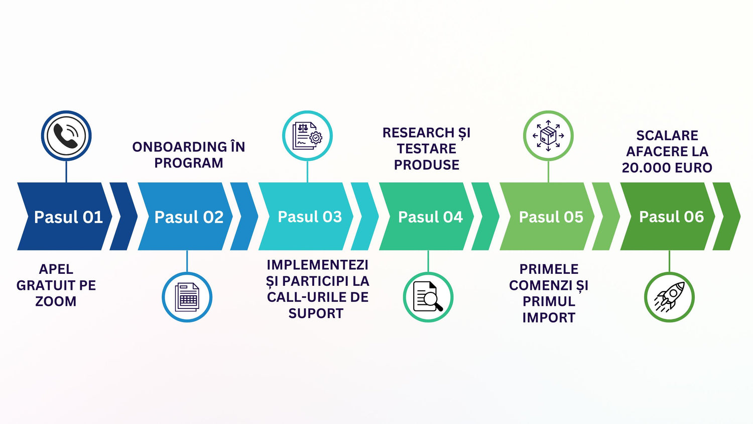 Da! Programul este conceput special pentru începători și te ghidează pas cu pas, de la zero până la primele vânzări și scalare. Nu ai nevoie de cunoștințe tehnice sau de experiență anterioară.